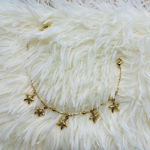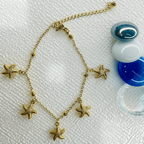 This starfish bracelet adorned with gold plating, designed to provide a perpetual summer vibe, so you can have the beach by your side.